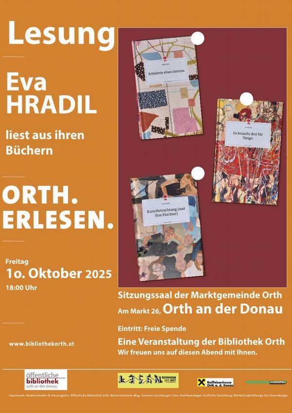 Im Rahmen des Literaturfestivals „Österreich liest. Treffpunkt Bibliothek.“, lud die Bibliothek Orth heuer zum 14. Male zu ihrer Veranstaltung „Orth. Erlesen.“ein.